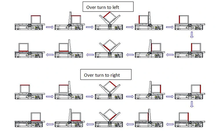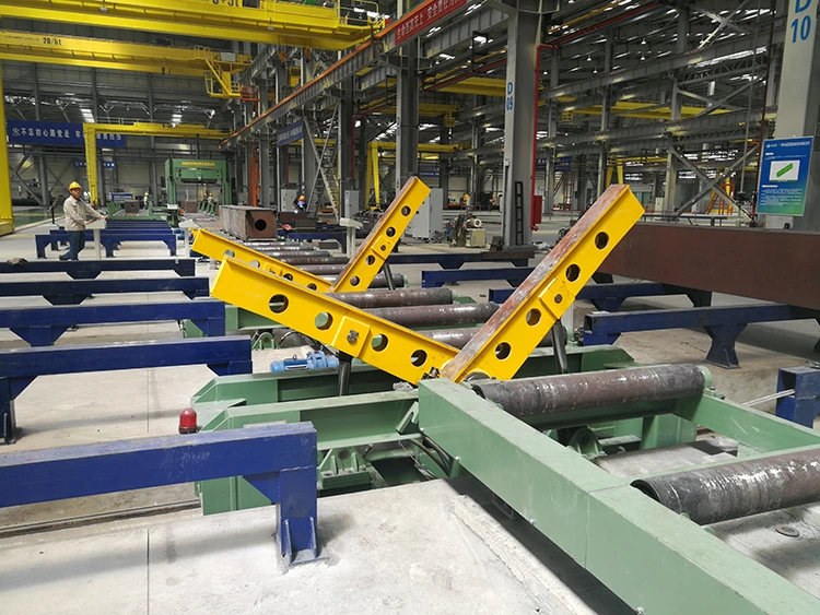 Mindegyik készletben két, mozgatható, 180 ° -os hidraulikus gerenda -laposok vannak, amelyeket elsősorban az egyik oldalon hegesztés után a munkadarabok túllépésére használnak. Munka közben emelje fel a munkadarabot a görgős asztaltól vagy a munkadarabotól, és a reduktor meghajtja a két felborító tartót, hogy szinkronban mozogjon, hogy a munkadarabot a görgős asztal vagy a munkadarab oldalára mozgatja. Ezután két hidraulikus henger vezet a két L alakú karot, hogy szinkronban forogjon. Miután a munkadarabot megsemmisítették, azt a görgős asztal vagy a munkadarab állványának közepére helyezik, majd a munkadarabot a következő folyamatba szállítják vagy hegesztik.